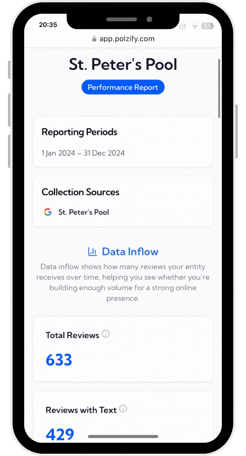What truly differentiates Polzify is our on-the-ground, hands-on approach to feedback and reputation management across the entire organisation. Through workshops and tailored training materials, we support management teams and frontline roles alike, helping everyone who interacts with guests and customers to understand their impact and contribute to continuous improvement.